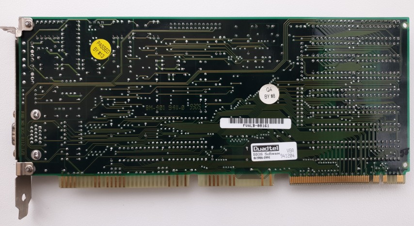 My card has been expanded to 2 MB, but interestingly this second bank is installed with slower 70ns DRAM chips compared to the factory ones in bank 0 that are 60ns. I believe the card will only run at the speed of the slowest memory, so this expansion would have slightly throttled the card's performance even though it would have opened up the ability to display at higher resolutions.