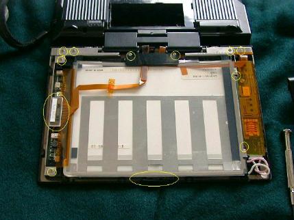 - 液晶のフレキコネクタをはずします。(画面左)