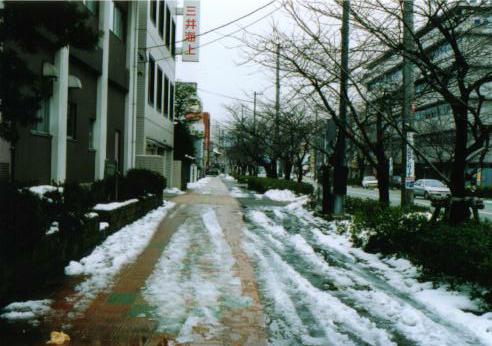 しばらく歩くと裁判所が見え、ここで左折してチンチン電車の線路から離れます。歩道には雪が積もって早足は困難です。逸る気持ちを押さえて歩いて行くと、すぐに順化2-22の表示が。