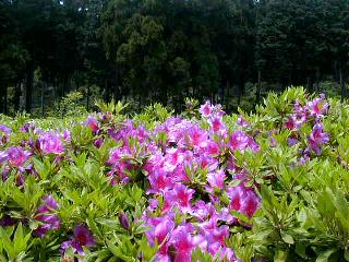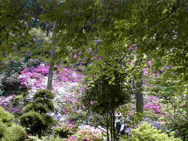 つつじは見頃で参道の右斜面一杯に咲き誇っている。年輩の観光客は皆カメラやビデオを振り回している。