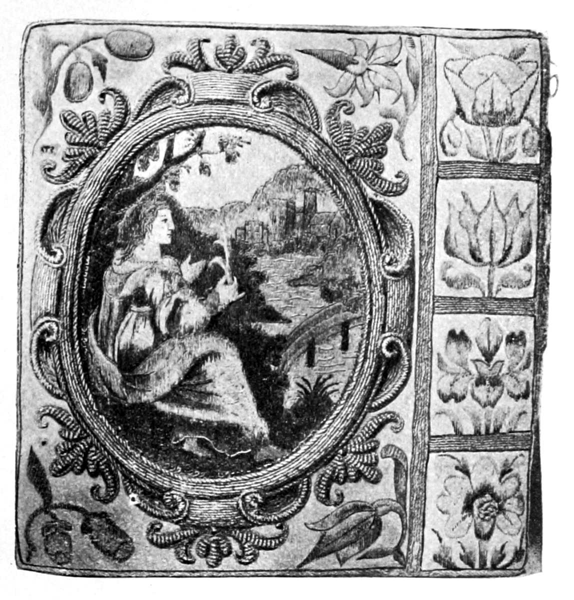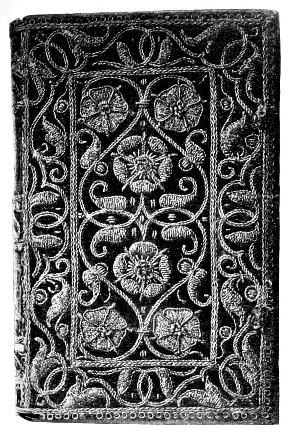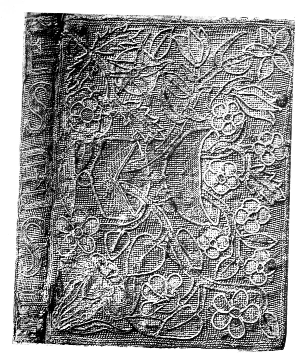 The Project Gutenberg EBook of English Embroidered Bookbindings, by Cyril James Humphries Davenport This eBook is for the use of anyone anywhere at no cost and with almost no restrictions whatsoever. You may copy it, give it away or re-use it under the terms of the Project Gutenberg License included with this eBook or online at www.gutenberg.org Title: English Embroidered Bookbindings Author: Cyril James Humphries Davenport Editor: Alfred Pollard Release Date: January 23, 2006 [EBook #17585] Language: English Character set encoding: ISO-8859-1 *** START OF THIS PROJECT GUTENBERG EBOOK ENGLISH EMBROIDERED BOOKBINDINGS *** Produced by K.D. Thornton, Bruce Albrecht, and the Online Distributed Proofreading Team at http://www.pgdp.net (This file was produced from images generously made available by The Internet Archive/Canadian Libraries)