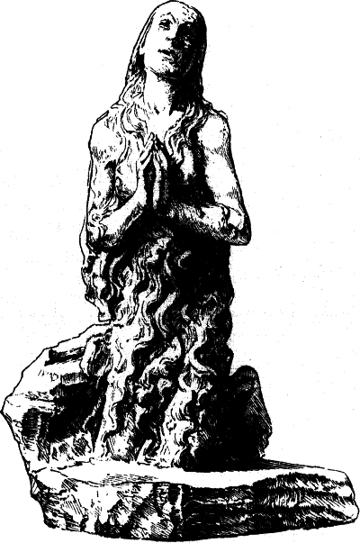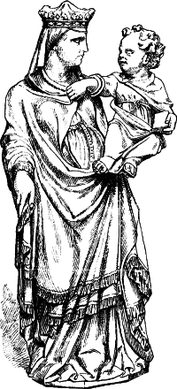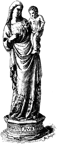 Für den Einfluß französischer Gotik, der sich in diesen Monumenten Süditaliens unter der Herrschaft der Anjou gelegentlich geltend macht, sind ein Paar Marmorstatuetten der Berliner Sammlung, die aus Neapel stammen (No. 29 und 30), charakteristische Beispiele. Von ungewöhnlich feiner Empfindung, erscheinen sie den Leidtragenden an gleichzeitigen französischen und burgundischen Sarkophagen in Ausdruck, Haltung und selbst in der Tracht nahe verwandt. Wie lange sich hier im Süden, namentlich in Sicilien und Calabrien, diese Mischung französischer und Pisaner Gotik erhält, dafür ist die reich bemalte Alabasterfigur der Madonna (No. 206) ein charakteristisches Beispiel; sie kann nach den Ornamenten wie nach der Behandlung kaum vor 1500 entstanden sein.