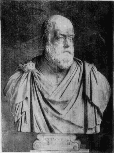 Die christliche Religion war schon an sich für die plastische Gestaltung ihrer Ideen und Personen wenig geeignet, sie war ihr auch durch ihren Zusammenhang mit dem mosaischen Gesetz abgeneigt; in Folge dessen wurde die Plastik von den großen monumentalen Werken, welche die Anerkennung des Christentums als Staatsreligion notwendig machte, so gut wie ganz ausgeschlossen. Aber auch der greisenhafte Zustand der Zeit, das Fehlen jeder erfinderischen Kraft für die neuen künstlerischen Aufgaben, welche durch das Christentum und die christliche Staatskirche erwuchsen, machte ein Zurückgehen auf antike Vorbilder und teilweise selbst auf antike Motive, ja eine knechtische Entlehnung derselben notwendig. [2]Selbst die Aufgaben blieben im Grunde die alten; man erfüllte sie nur mit neuem Geist.
