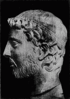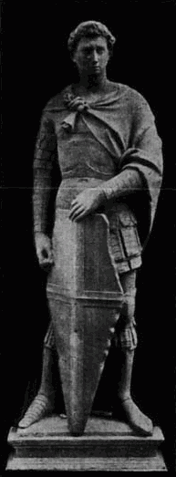 [9]Zwischen diesen Arbeiten steht das Bruchstück eines großen plastischen Werkes, welches in Rom ausgegraben wurde und das sich jetzt im Berliner Museum befindet, bisher vereinzelt und unerklärt da: der kolossale Marmorkopf eines bärtigen Mannes, den der Reif im lockigen Haar wohl als Fürsten charakterisiert (No. 28A). Neben den oben genannten, etwa gleichzeitigen süditalienischen Büsten fällt in diesem Marmorwerke der enge Anschluß an antike Büsten archaischen Stils, sowie die außerordentlich saubere Ausführung und teilweise schon individuelle Empfindung auf, wie sie sich z. B. in der Behandlung des Ohres bekundet. Die eigentümlich stilisierte Behandlung des flach anliegenden lockigen Barthaares findet sich ganz übereinstimmend im Haar der Bronzewölfin im Kapitol, die auch sonst in ihrer Auffassung und Behandlung mehr mittelalterlichen als antiken Charakter hat. Wir werden daher auch dieses Werk der römischen Plastik des XIII. Jahrh. zuzuschreiben haben, die uns in ihrer Entwickelung und im Zusammenhang mit der Plastik des übrigen Italien noch manches zu raten giebt.