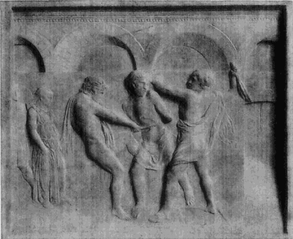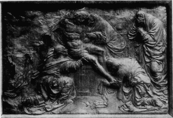 Für die hohe Entwickelung des künstlerischen Empfindens und die Feinheit des Stilgefühls im Quattrocento ist die Behandlung des Reliefs ein sprechendes Zeugnis. Wie im ganzen Mittelalter, so nimmt das Relief auch jetzt noch den bedeutendsten Platz in der Plastik ein, tritt aber gleichfalls weniger selbständig wie als Schmuck der verschiedensten Monumente und Bauteile auf. Während nun das Relief im früheren Mittelalter über eine überfüllte Anhäufung von beinahe freistehenden Figuren, nach dem Vorbilde der spätrömischen und etruskischen Denkmäler, nicht hinauskommt und das Trecento daraus zu einer ganz malerischen Behandlung des Reliefs gelangt, ist die Auffassung des Reliefs im Quattrocento, so verschieden und mannigfaltig sie ist, regelmäßig eine durchaus plastische. Die Art des Reliefs — ob Hochrelief, Halbrelief oder Flachrelief — ist daher zumeist nicht nach der Individualität der einzelnen [48]Künstler verschieden (wenn auch einzelne die eine oder andere Art bevorzugen), sondern sie wird, wie in der klassischen Zeit der griechischen Plastik, der Bestimmung des einzelnen Reliefs entsprechend gewählt. Es finden sich daher an größeren Monumenten nicht selten alle Arten des Reliefs nebeneinander, wie es die Gesamtwirkung und der Platz, an dem die einzelnen Reliefs angebracht sind, erforderte. Die perspektivische Behandlung des Reliefs, des Flachreliefs wie des Hochreliefs ist dabei den Künstlern des Quattrocento fast ausnahmslos zur anderen Natur geworden.