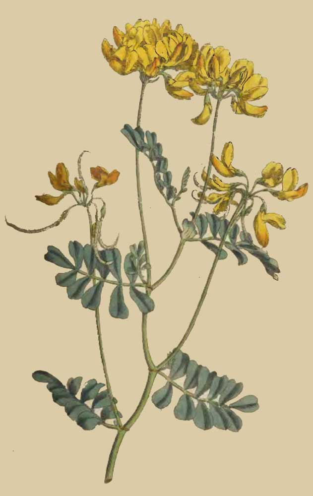CORONILLA valentina fruticosa, foliolis subnovenis, stipulis suborbiculatis. Linn. Syst. Vegetab. ed. 14. Murr. p. 669. Ait. Hort. Kew. V. 3. p. 58.
