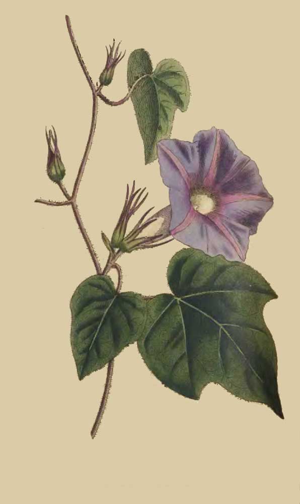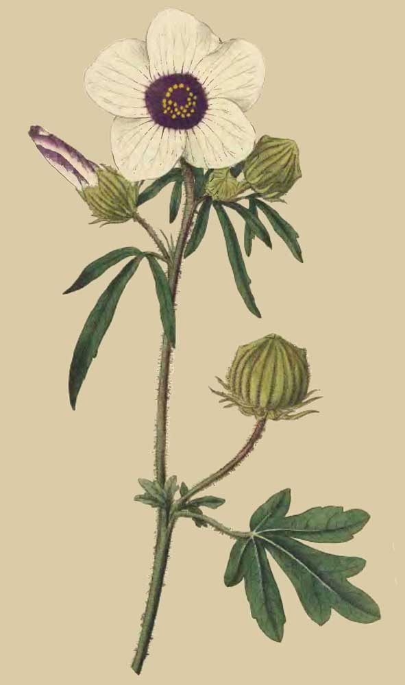 The leaves are nearly round, and have a pleasing silvery hue: a few of them only, and those chiefly at the extremities of the young shoots, are of the form described by Linnæus in his specific character of the plant, and hence Commelin's description (vid. Syn.) is to be preferred, as leading us with more certainty to a knowledge of the plant; the colour of the leaves, the colour and unusual magnitude of the blossoms, are indisputably the most striking features of the species, and therefore to be resorted to: for my own part, as a friend to the advancement of the science, rather than as the follower of that great man, I see no good reason why colour should not in many instances, especially where expressive characters are wanting, form a part of the specific character in plants, as well as in animals: we are told indeed of its inconstancy. I would ask—who ever saw the colour of the leaves or blossoms of the present plant to vary? and, on the contrary, who ever saw its leaves constant in their form?