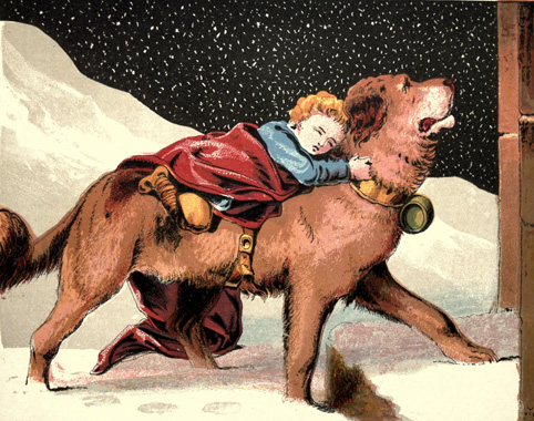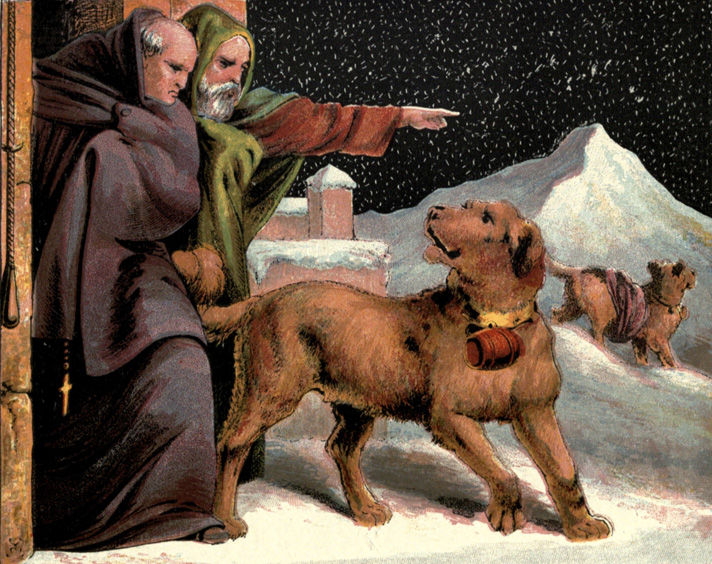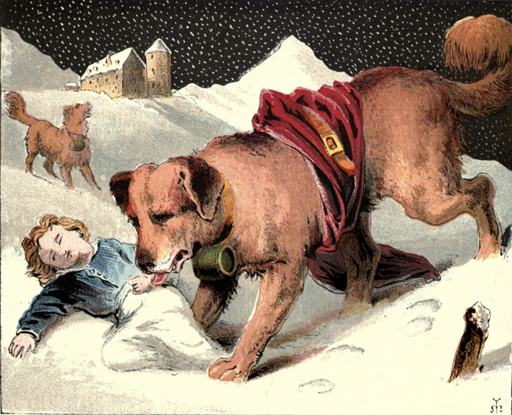 How thankful you are when you see two noble-looking dogs coming toward you, one with a flask of spirits tied to his neck, and the other carrying a cloak to wrap around you!