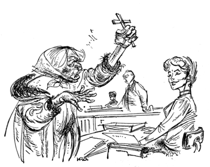 There were all the desks, and the men and women working. And near the far corner, on the left, the girl sat studying a sheet of paper. Mrs. Wladek looked at the blond hair and the pretty face and the slight figure, and shivered.