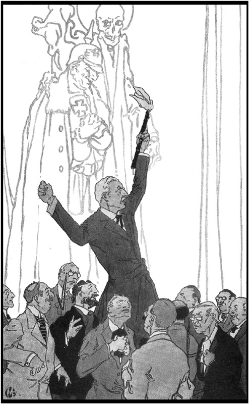 While this blanket telegram was travelling over the wires a certain magazine publisher was stopping his presses to throw out a special article for the writing of which he had paid fifteen hundred dollars to the best satirical essayist in the country; and another publisher was countermanding the order he had given to a distinguished caricaturist for a series of cartoons all dealing with the same subject, and was tearing up two of the cartoons which had already been delivered and for which he already had paid. He offered to pay for the cartoons not yet drawn, but the artist declined to accept further payment when he was told in confidence the reason for the cancellation of the commission.