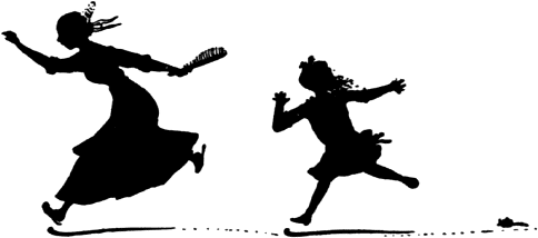 „Ja, ja, dat zie ik. Kijk eens, de stukken modder vliegen achter jelui uit. Ondeugende kinders, dat je bent....”