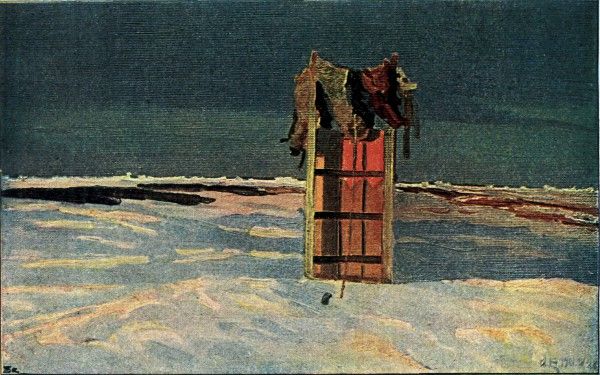 Painting of a Sledge Set Upon End for the Night, With Skins and Meat Hung Upon It So as to Be Out of Reach of the Dogs 415