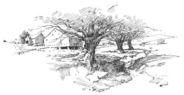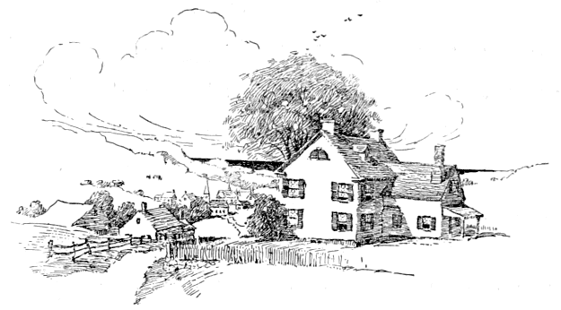 It was the end of May, when "spring goeth all in white." The apple trees were scattering their delicate petals on the ground, dropping them over the stone walls to the roadsides, where in the moist places of the shadows they fell on beds of snowy innocence. Here and there a single tree was tinged with pink, but so faintly, it was as if the white were blushing. Now and then a tiny white butterfly danced in the sun and pearly clouds strayed across the sky in fleecy flocks.