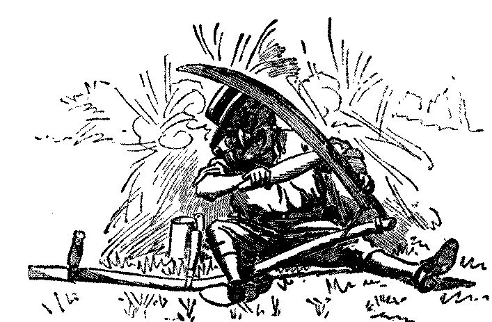 Nephew (on a visit to the "Old Country"). "Ah, uncle, in Canada we don't do our hay-makin' in this 'ere old-fashioned way."