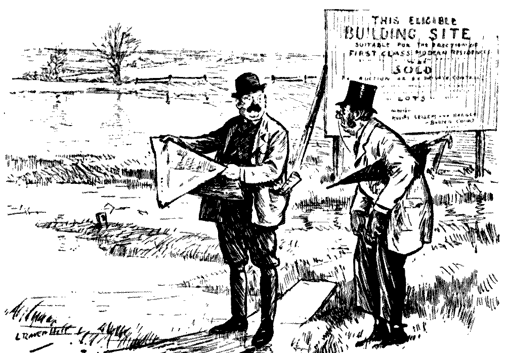 Land and Water.—Prospective Purchaser (arrived from town to see the locality as advertised some three weeks ago. He has not heard of the recent floods in this part of the country). "Look here. Are you selling this property by the yard or by the pint?"