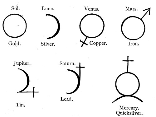 Man has ever been overawed by the majesty of the stars; yet he has not failed to notice that the movements of these bodies are apparently capricious. The moon has always been to him a type of mutability; only in the sun has he seemed to find a settled resting-point. Now, when we remember that in the alchemical scheme of things the material earth and material heavens, the intellectual, the moral, and the spiritual world were regarded as one great whole, the parts of which were continuously acting and reacting on each other, we cannot wonder that the alchemist should regard special phenomena which he observed in his laboratory, or special forms of matter which he examined, as being more directly than other phenomena or other forms of matter, under the influence of the heavenly bodies. This connection became gradually more apparent to the student of alchemy,[Pg 11] until at last it was fixed in the language and the symbols which he employed.