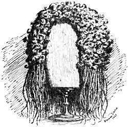 Dr. Doran relates a strange story, saying St. Jerome vouches for its authenticity, and by him it was told to deter ladies from wearing wigs. “Prætexta,” to use Doran’s words, “was a very respectable lady, married to a somewhat paganist husband, Hymetius. Their niece, Eustachia, resided with them. At the instigation of the husband Prætexta took the shy Eustachia in hand, attired her in a splendid dress, and covered her fair neck with ringlets. Having enjoyed the sight of the modest maiden so attired, Prætexta went to bed. To that bedside immediately descended an angel, with wrath upon his brow, and billows of angry sounds rolling from his lips. ‘Thou hast,’ said the spirit, ‘obeyed thy husband rather than the Lord, and has dared to deck the hair of a virgin, and made her look like a daughter of earth. For this do I wither up thy hands, and bid them recognize the enormity of thy crime in the amount of thy anguish and bodily suffering. Five months more shalt thou live, and then Hell shall be thy portion; and if thou art bold[Pg 5] enough to touch the head of Eustachia again, thy husband and thy children shall die even before thee.’”