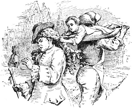 Thomas Brown, in his “Letters from the Dead to the Living” presents a pen portrait of beaux, as they appeared at the commencement of the eighteenth century. Some of the passages are well worth reproducing, as they contain valuable information concerning wigs. “We met,” says the writer, “three flaming beaux of the first magnitude. He in the middle made a most magnificent figure—his periwig was large enough to have loaded a camel, and he bestowed upon it at least a bushel of powder, I warrant you. His sword-knot dangled upon the ground, and his steinkirk, that was most agreeably discoloured with snuff from the top to the bottom, reach’d down to his waist; he carry’d his hat under his left arm, walk’d with both hands in the waistband of his breeches, and his cane, that hung negligently down in a string from his right arm, trail’d most harmoniously[Pg 12] against the pebbles, while the master of it was tripping it nicely upon his toes, or humming to himself.” Down to the middle of the eighteenth century, wigs continued to increase in size.