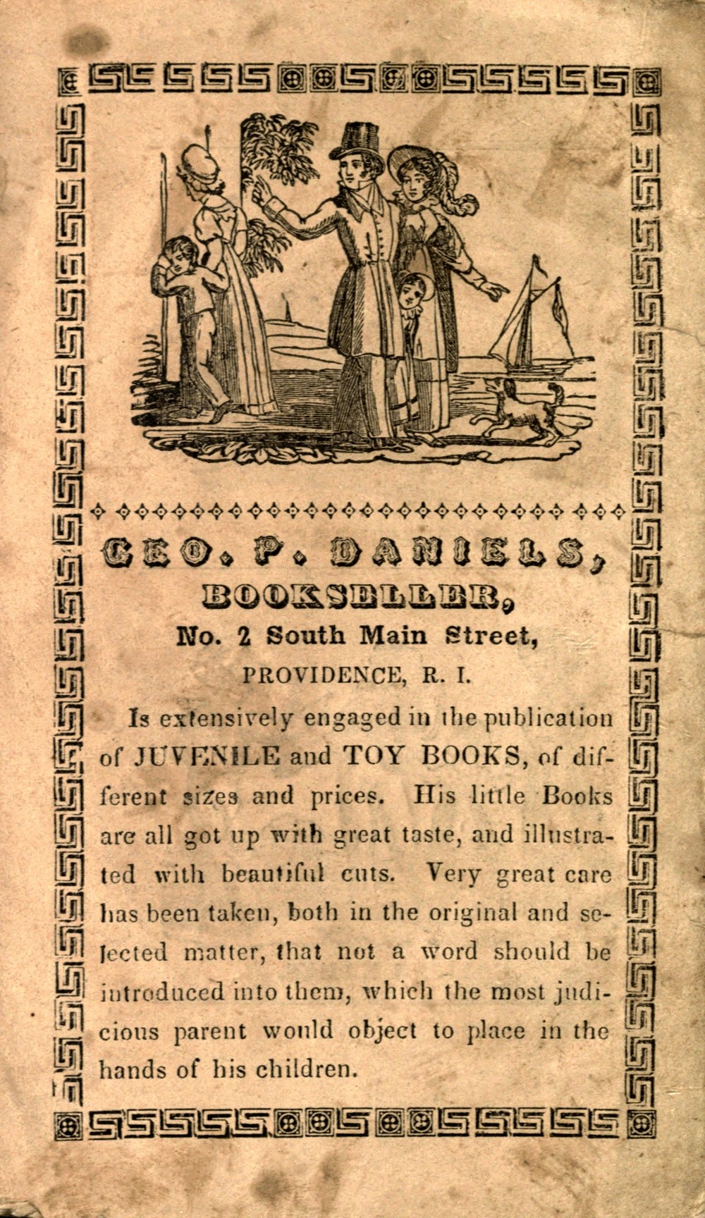 Is extensively engaged in the publication of JUVENILE and TOY BOOKS, of different sizes and prices. His little Books are all got up with great taste, and illustrated with beautiful cuts. Very great care has been taken, both in the original and selected matter, that not a word should be introduced into them, which the most judicious parent would object to place in the hands of his children.