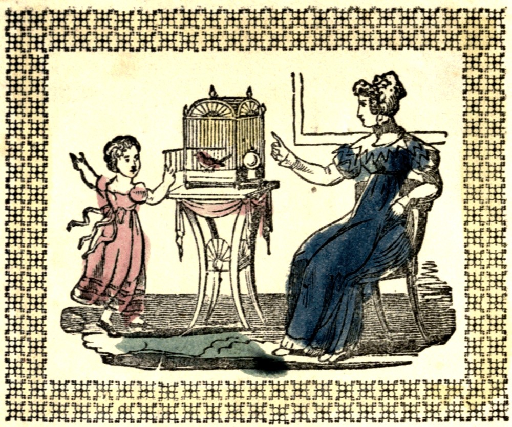 One morning Susan had promised to give her little bird his liberty. When she had opened the door of the cage, she ran to her Mamma, and they both watched him. He flew down and warbled the sweetest song Susan ever heard. When he had flown away, she watched him until her eyes pained her, and the tears rolled down her cheeks. She felt sorry to part with him, but she knew it was wrong to deprive him of his liberty.