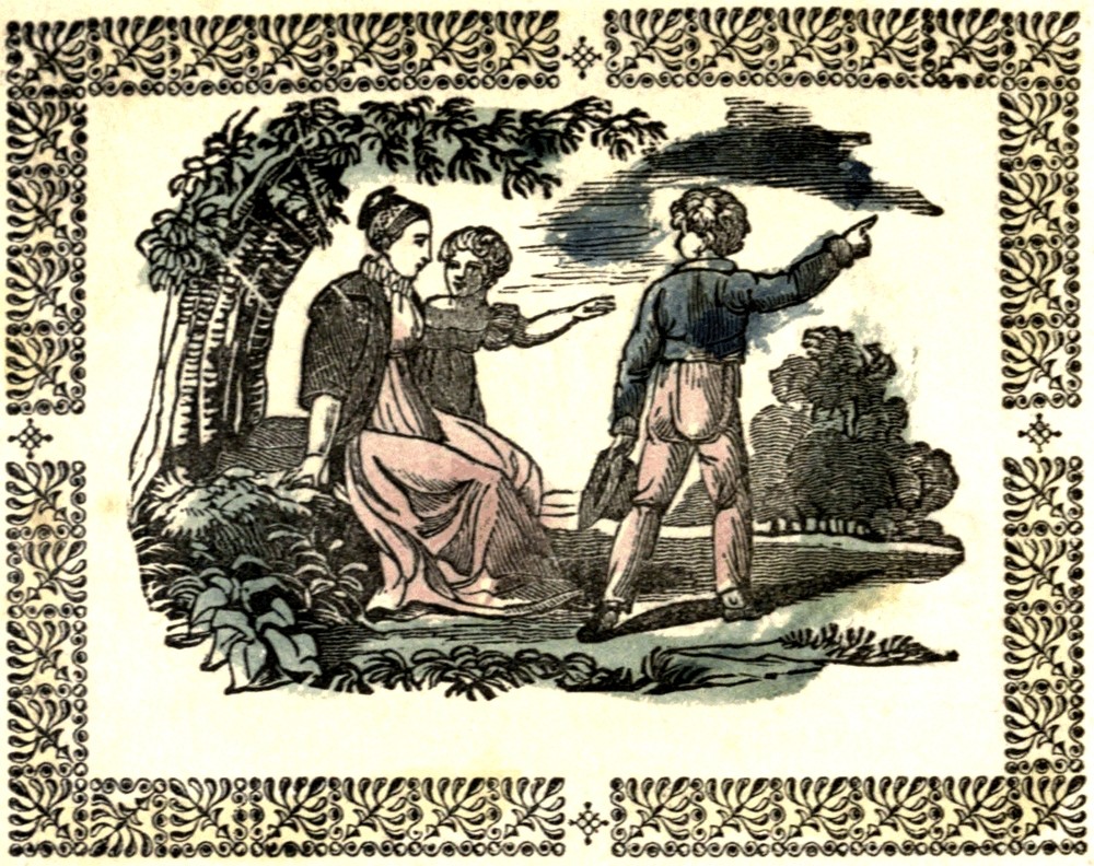 This little boy's parents live in the country, and when they wish any thing from the town, they are obliged to go, or send a great distance for it. He is going to town to buy some books for himself to study in at school. His mother and sister have come out with him so far, and now they are talking about his errand. I hope he will get the books and arrive safe home again; and the next time we meet him he will no doubt be a better scholar.