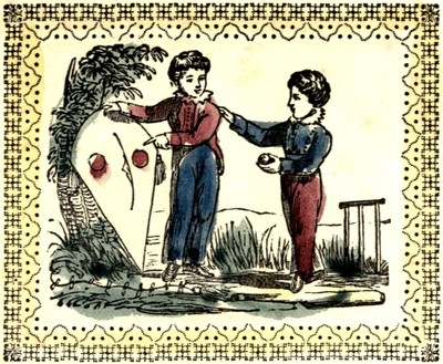 These little boys are talking about their Kite and Ball. I wonder if they have learned their lessons. Children should not neglect to learn for the sake of playing with their toys; but when their task is done it affords their teachers pleasure to see them join in the innocent amusements of their playmates.—These give vigor to their bodies, and prepare them to renew their studies with cheerfulness.