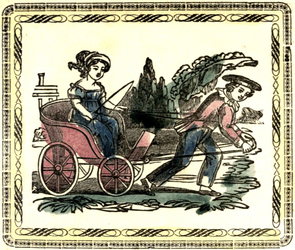 What a fine horse Miss Emma has got.—I have no doubt she can manage him better than she could the one her papa drives.—Take care Henry; do not stumble and fall down. Take care Emma; do not use the whip. A whip for a plaything, is quite harmless; but if used as though you were driving a real horse, it would be quite another thing. Brother is very kind, to take the place of a dumb animal. It would be cruel to repay his kindness with blows. Do Henry and Emma never hurt those, who treat them kindly?