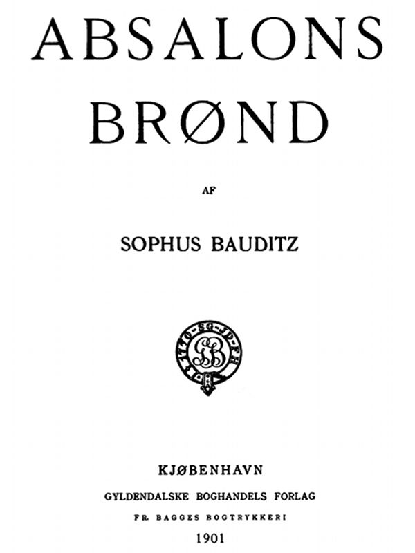 The Project Gutenberg EBook of Absalons Brond, by Sophus Bauditz This eBook is for the use of anyone anywhere at no cost and with almost no restrictions whatsoever. You may copy it, give it away or re-use it under the terms of the Project Gutenberg License included with this eBook or online at www.gutenberg.org Title: Absalons Brond Author: Sophus Bauditz Release Date: July 21, 2012 [EBook #40291] Language: Danish Character set encoding: ISO-8859-1 *** START OF THIS PROJECT GUTENBERG EBOOK ABSALONS BROND *** Produced by The Online Distributed Proofreading Team at http://www.pgdp.net (This book was produced from scanned images of public domain material from the Google Print project.)