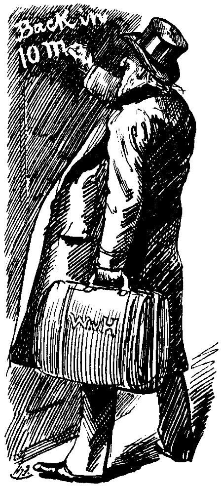 House of Commons, Friday, December 22.—House adjourned for Christmas Recess; pleased to find that it will include the whole of Christmas Day. Some talk of being satisfied with the Sunday, spending Christmas Day in further pursuit of Parish Councils Bill. But after deliberation decided to have a real good holiday on Christmas Day. Came across Squire of Malwood just now. Was chalking up on door "Back in ten minutes."