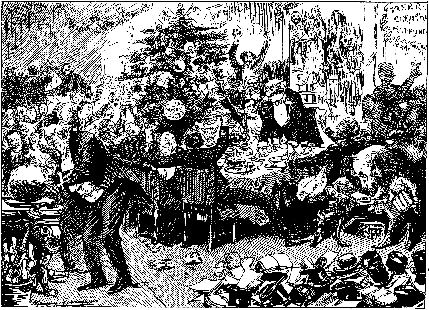 [Scene closes as all the guests crowd round him and ask him to drink the health of Modern Fiction and—The New Year.