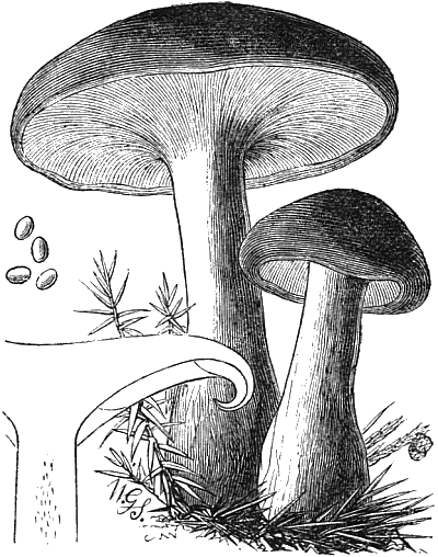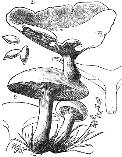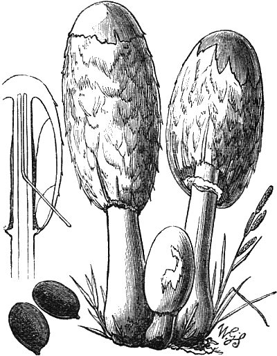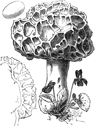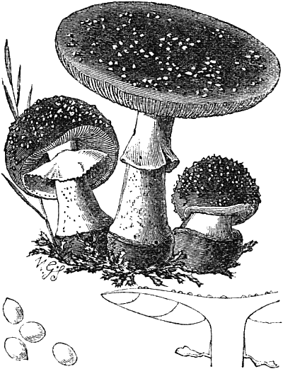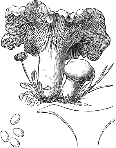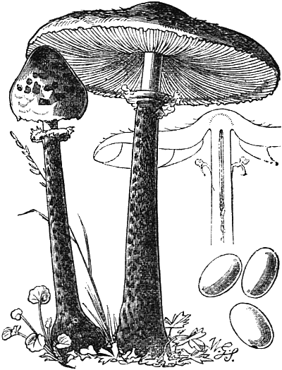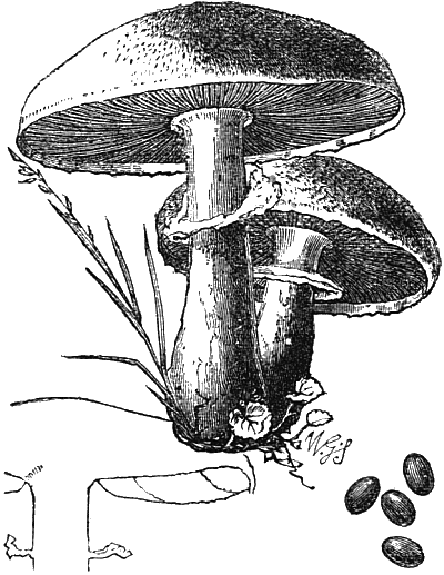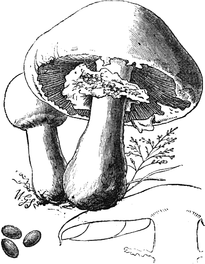 The illustrations showing the cave-culture of mushrooms are from my “Parks, Promenades, and Gardens of Paris.” And the frontispiece is after two large cuts of the mushroom caves of Paris, which appeared in the Illustrated London News some time after the appearance of my work. The illustrations of edible fungi are by Mr. Worthington G. Smith, who knows and draws these interesting subjects so thoroughly well; and the other figures are by Mr. Hodgkin.