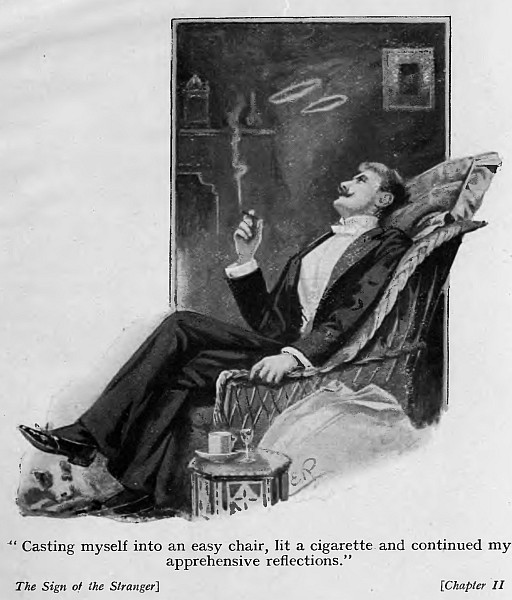 I glanced at severed notes that had been dropped into the rack in my absence, and then casting myself into an easy chair lit a cigarette and continued my apprehensive reflections.