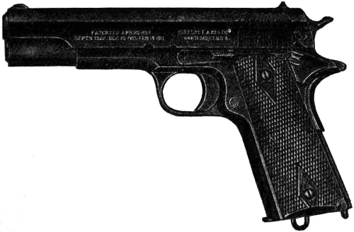 The magazine or automatic pistol is the latest type of hand firearm. It is a multishot pistol in which the mechanism is operated automatically by the recoil. Pulling the trigger is the only manual operation necessary to fire successive shots until the supply of cartridges in the magazine (usually six to ten) is exhausted. The first models were introduced about 1898. These had many defects and objections, such as failure to function regularly, danger in manipulation due to insufficient safety devices, poor balance, unsightly lines, etc. Nevertheless the advantages of this type of arm over the revolver for military purposes in effective range, rapidity of fire, accuracy, interchangeability, etc., were soon recognized and manufacturers were encouraged to improve and perfect them.