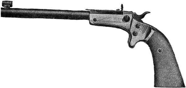 It is much more difficult to shoot well with the pistol or revolver than with the rifle. The latter, having a stock to rest against the shoulder and steady one end of the piece, has a decided advantage in quick aiming and in pulling[Pg 17] the trigger. The former, without a stock and being held in one hand with the arm extended so as to be free from the body, is without any anchor or support whatever, and is free to move in all directions. Consequently the least jar, jerk in pulling the trigger, puff of wind, or unsteadiness of the hand greatly disturbs the aim. Intelligent practice will, however, overcome these difficulties and disadvantages to such a degree that an expert shot with a pistol or revolver under favorable conditions can equal a fair shot with a rifle at the target up to 200 yards. When the novice essays to shoot the pistol or revolver, the results are generally disappointing and discouraging; but rapid progress invariably rewards the efforts of those who persevere, and when once thoroughly interested in this style of shooting, there comes a fascination for it that frequently endures throughout a lifetime.