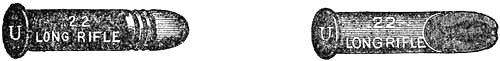 The ineffectiveness of the .38-caliber service revolver charge was frequently complained of by the officers and men serving in the Philippine Islands. This was due to the light powder charge and the conoidal shaped point of the bullet. To remedy this weakness .45-caliber revolvers were issued for the Philippine[Pg 21] service, and a new .45-caliber cartridge designed to which magazine pistol manufacturers were invited to adapt an arm. Unfortunately this new cartridge, which is now the service ammunition, has also a conoidal pointed bullet, is not well proportioned, and consequently develops only a part of its stopping power possibilities.