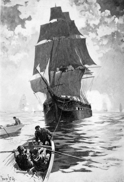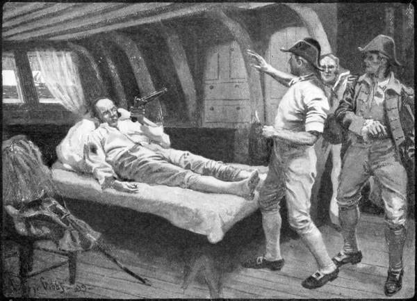 On the “Ranger” the loss had been comparatively slight. Lieutenant Wallingford and[22] one other man had been killed and there were five or six wounded men in the cockpit. Jones seemed to be everywhere, but still remained uninjured and directed the firing until the end. He saw that the sharpshooters in his tops were doing terrific execution on the decks of his adversary, and at last he saw the imposing figure of Captain Burdon twist around for a second and then sink down to the deck. Another officer fell, and in a moment above the crash of division firing and the rattle of the musketry overhead he heard a cry for quarter.