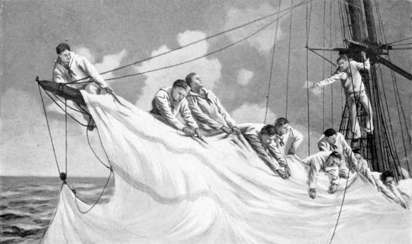 The people on shore heard the cannonading cease and saw the great clouds of gold-tinted smoke roll away to the south. There they saw the two vessels locked as if in an embrace of death and a great cheer went up.[23] They thought the “Drake” invincible. The gray of twilight turned to black, and the ships vanished like spectres in the darkness. But late that night some fishermen in a boat came ashore with a sail from the store-room of the “Drake.” They said it had been given them by John Paul Jones. The people knew then that the “Drake” had been captured.