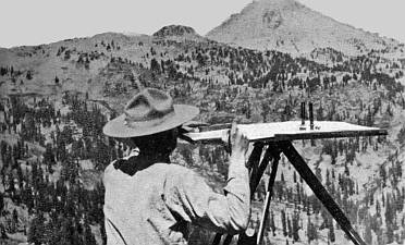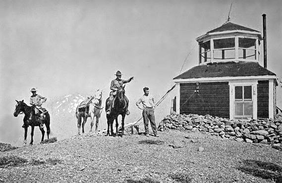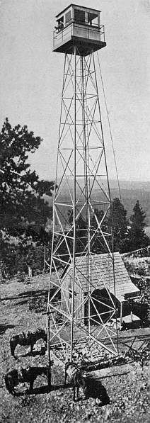 Figure 1. An observation point for finding forest fires. Vigilance is the watchword on the National Forests. During 1916 forest officers extinguished 5,655 forest fires. Photo by the author