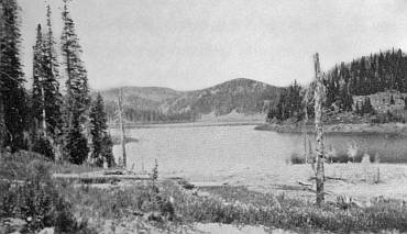 Figure 3. The climate of most of the National Forests is severe. This view was taken in the early summer and shows the high mountains still covered with snow. Most of the National Forest lands are therefore of small value for agriculture. Photo by Abbey.