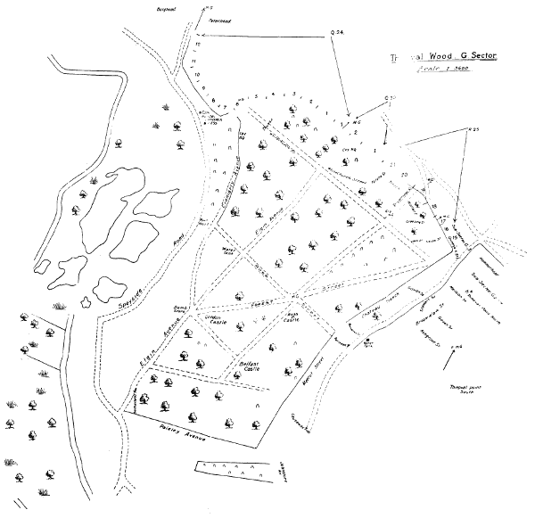 A larger version of the map of Thiepval Wood, G. Sector can be seen by clicking on the image.