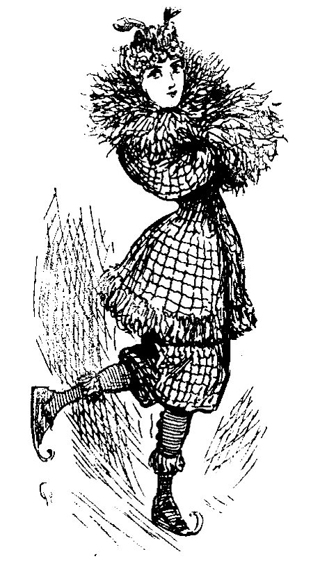 They say the sham ice here is almost perfect, very nearly as good as the real ice, in fact so little is the difference between the real and sham that a skater, unless he had tried it, would hardly real-ice it! The band plays, "Hwfa (Williams) of thee I'm fondly dreaming!" as the patineurs and patineuses who have paid their three or five shillings glide about at the rate of either eighteenpence or two-and-sixpence a foot.