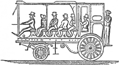 Not disheartened by this failure he built another one, longer and stronger, and this he succeeded in propelling by steam power, though very slowly. It was, indeed, a much less successful effort than the attempts of Mr. Miller and Lord Dundas. Having been threatened with opposition by M. le Blanc, the patentee of steam-boats in France, Fulton determined to return to his native country, where the large navigable rivers and lakes offered ample scope for the development of steam navigation. Having heard of the success of Symington's boats, he visited Scotland for the purpose of profiting by his experience; and he induced Symington, by promises of great advantages if the invention succeeded in America, to show him the "Charlotte Dundas" at work, and to enter into full explanations of every part. Thus primed with the facts, and with the further suggestions of Symington, Fulton repaired to New York. Mr. Livingstone, who had assisted Fulton in his experiments, was himself an inventor of several plans of propelling vessels by steam, and in 1798 he obtained a patent in15 the State of New York, for twenty years, on condition that he should produce a steam-boat by the 7th of March, 1799, that would go at the rate of four miles an hour. Having failed to fulfil that condition, the patent privilege was left open, and was promised to the first inventor who succeeded in propelling a boat by steam power at the proposed speed of four miles an hour. Fulton, who had entered into partnership with Mr. Livingstone, possessed advantages in the construction of the vessel he built in America, far greater than any previous inventor. He had not only gained knowledge by his former failures, but he was able to profit by the experience of others, and he had secured a superior steam engine, manufactured by Boulton and Watt, of twenty-horse power. This was a much more powerful engine than any that had been used in any former experiment; the one employed by Mr. Livingstone having had only five-horse power. This steam-vessel was launched at New York in 1807, and was called the "Clermont," the name of Mr. Livingstone's residence on the banks of the Hudson. Its length was 133 feet, depth 7 feet, and breadth 18 feet. The boiler was 20 feet long, 7 feet deep, and 8 feet broad. There was only one steam cylinder, which was 2 feet in diameter, with a length of stroke of 4 feet. The paddle-wheels were 15 feet in diameter, and 5 feet broad; and the burthen of the vessel was 160 tons. Crowds of spectators assembled to see the boat start on its first experimental voyage. The general impression, even of those who were friendly to Fulton, was that it would fail, and an accident which occurred16 when the vessel was under way confirmed this opinion. The foreboders of evil exclaimed immediately that they had "foreseen something of the kind;" and observed "it was a pity so much expense had been incurred for nothing!" The required repairs were, however, soon made. The vessel when again tried cut her way bravely through the water, to the astonishment of all, and the doubts, and fears, and lamentations were quickly changed into congratulations.
