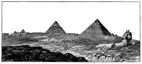 PYRAMIDS OF GIZEH AND SPHYNX. (From Champollion's Egypt.)
