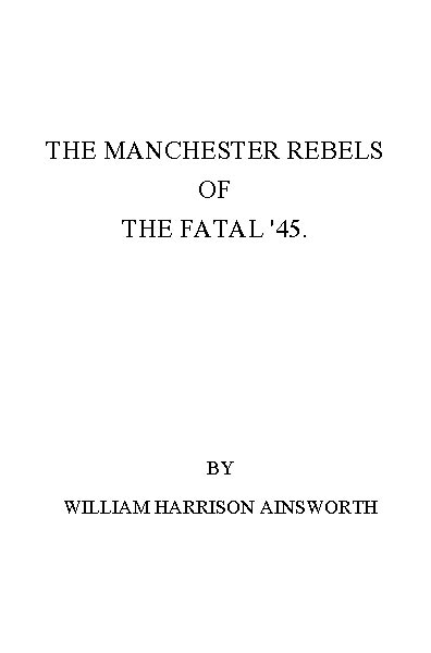 The Project Gutenberg EBook of The Manchester Rebels of the Fatal '45, by William Harrison Ainsworth This eBook is for the use of anyone anywhere at no cost and with almost no restrictions whatsoever. You may copy it, give it away or re-use it under the terms of the Project Gutenberg License included with this eBook or online at www.gutenberg.org Title: The Manchester Rebels of the Fatal '45 Author: William Harrison Ainsworth Illustrator: Frederick Gilbert Release Date: July 24, 2014 [EBook #46398] Language: English Character set encoding: UTF-8 *** START OF THIS PROJECT GUTENBERG EBOOK MANCHESTER REBELS *** Produced by sp1nd and the Online Distributed Proofreading Team at http://www.pgdp.net (This file was produced from images generously made available by The Internet Archive)
