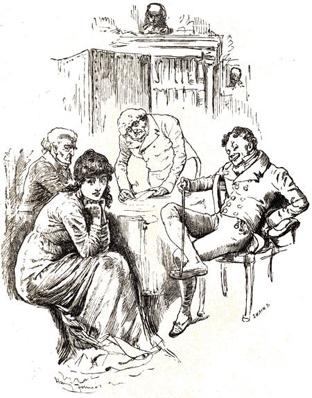 It must not, however, be concluded from this observation that Miss Margaret Slade was in love with anybody else. She was but[19] seventeen at most; an age at which among well-conducted young persons no such idea enters the head, nor indeed, in her case, as one would think, had there been any opportunity for its entrance. She had been brought up in the country in seclusion, and only a few months ago, upon the death of Mrs. Erin, had been sent for by her uncle to keep house for him. His establishment in Norfolk Street, Strand, was a very simple one, and the company he entertained numbered none of these who, in the language of the day, were called ‘the votaries of Cupid.’ No young beaux ever so much as crossed the threshold. Mr. Erin’s visitors were all grave elderly gentlemen, more interested in a binding than in a petticoat, and preferring some old-world volume to a maiden in her spring-time. There was indeed, ‘though,’ as the song says, ‘it is hardly worth while to put that in,’ a son of Mr. Erin’s, of her own age, who dwelt in his father’s house. But the young man was out all day engaged in his professional avocation—that of a conveyancer’s clerk; and even when he returned at eve,[20] mixed but little with the family. It seemed to Margaret that his father did not treat him very kindly.
