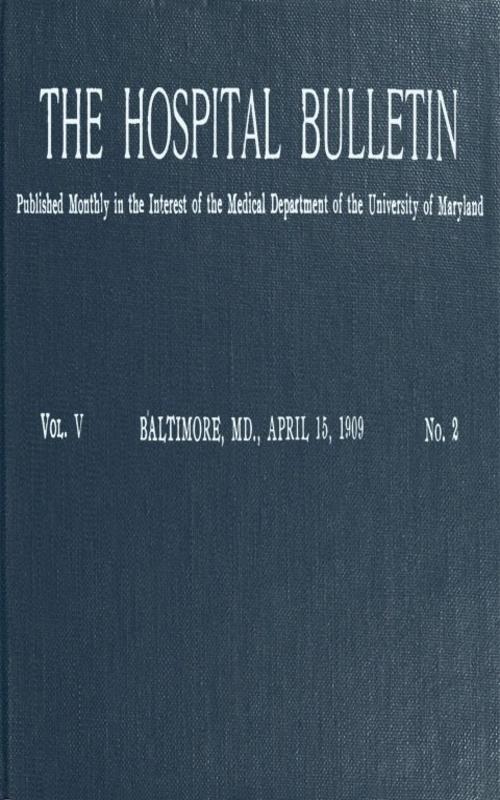 The Project Gutenberg EBook of The Hospital Bulletin, Vol. V, No. 2, April 15, 1909, by Various This eBook is for the use of anyone anywhere in the United States and most other parts of the world at no cost and with almost no restrictions whatsoever. You may copy it, give it away or re-use it under the terms of the Project Gutenberg License included with this eBook or online at www.gutenberg.org. If you are not located in the United States, you'll have to check the laws of the country where you are located before using this ebook. Title: The Hospital Bulletin, Vol. V, No. 2, April 15, 1909 Author: Various Release Date: December 29, 2016 [EBook #53827] Language: English Character set encoding: UTF-8 *** START OF THIS PROJECT GUTENBERG EBOOK HOSPITAL BULLETIN, APRIL 15, 1909 *** Produced by The Online Distributed Proofreading Team at http://www.pgdp.net (This file was produced from images generously made available by The Internet Archive)