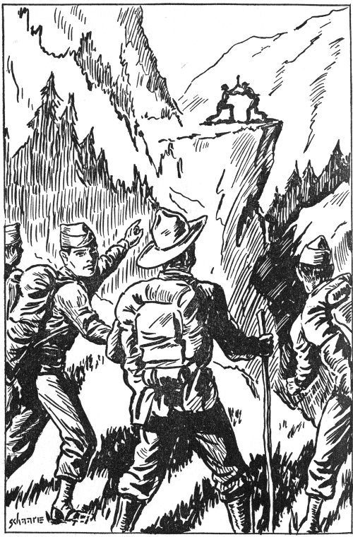 Far above them, on the high cliffs, they saw two struggling men.(See page 200)