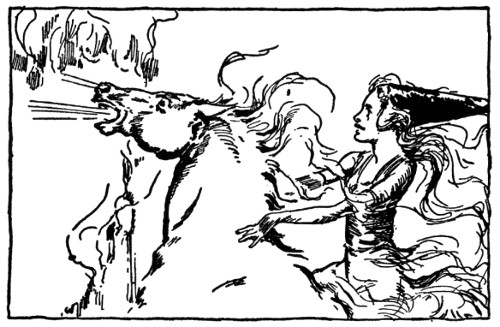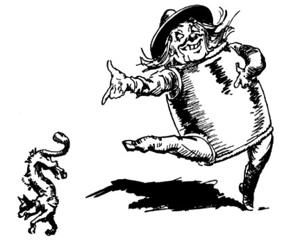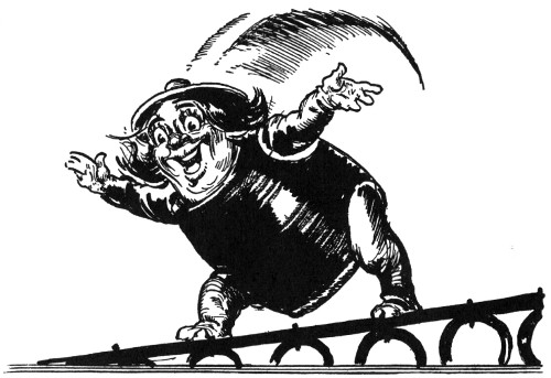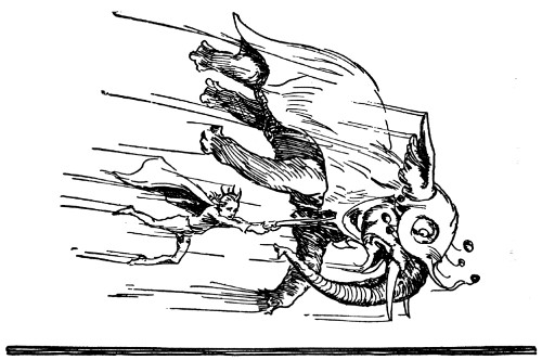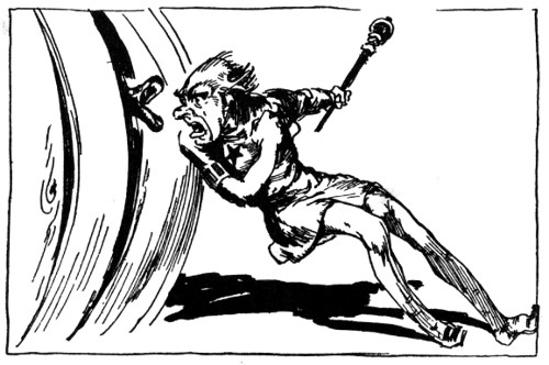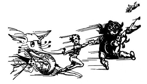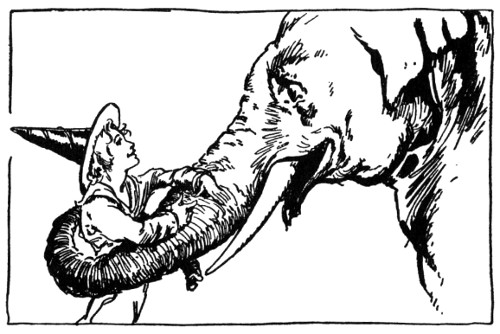 Now nowhere but in Oz could an elephant talk, much less come hammering on the doors of a royal castle, but in Oz, as we very well know, animals talk and act as sensibly as people, which makes Oz about ten times as exciting as any other country on the map. But while I've been explaining all this, Randy had run down the steps and was half-way across the courtyard.