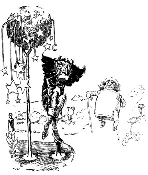 "You should not speak like that of your royal parent," chided Uncle Hoochafoo, tapping his spectacles absently against his teeth, "for you are very much like him, my boy, very much like him. Hmm! Hmm! Harumph!" Uncle Hoochafoo cleared his throat thoughtfully. "What you need is a change, a new interest. Ah, I have it! You must marry, my lad, you must marry! Some pretty little Princess or rich young Queen, and then everything will be punjanoobious!"