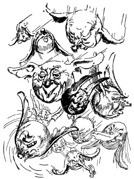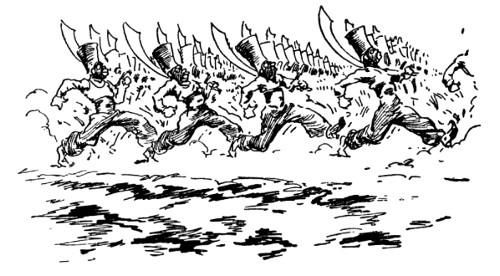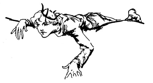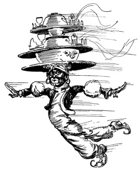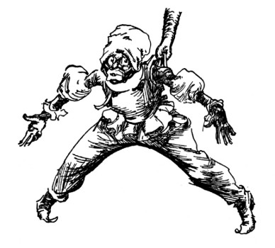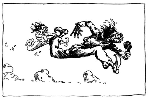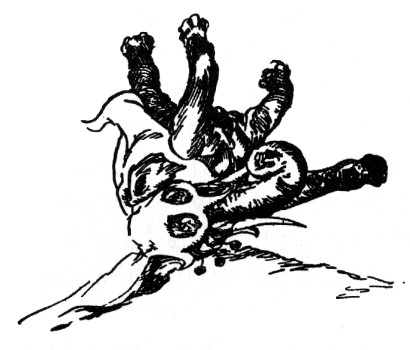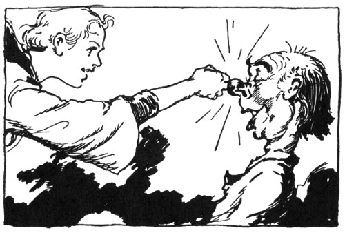 "Yes, yes, like this!" Bringing up his fist, Randy made such a splendid connection with the valet's nose, Dawkins toppled over backwards. Dancing from one foot to the other as the outraged servant sprang to his feet, Randy prepared to defend himself. But with his hand clapped to his nose, Dawkins was retiring rapidly. "Thank you!" he muttered in a strangled voice, "thank you very much!"